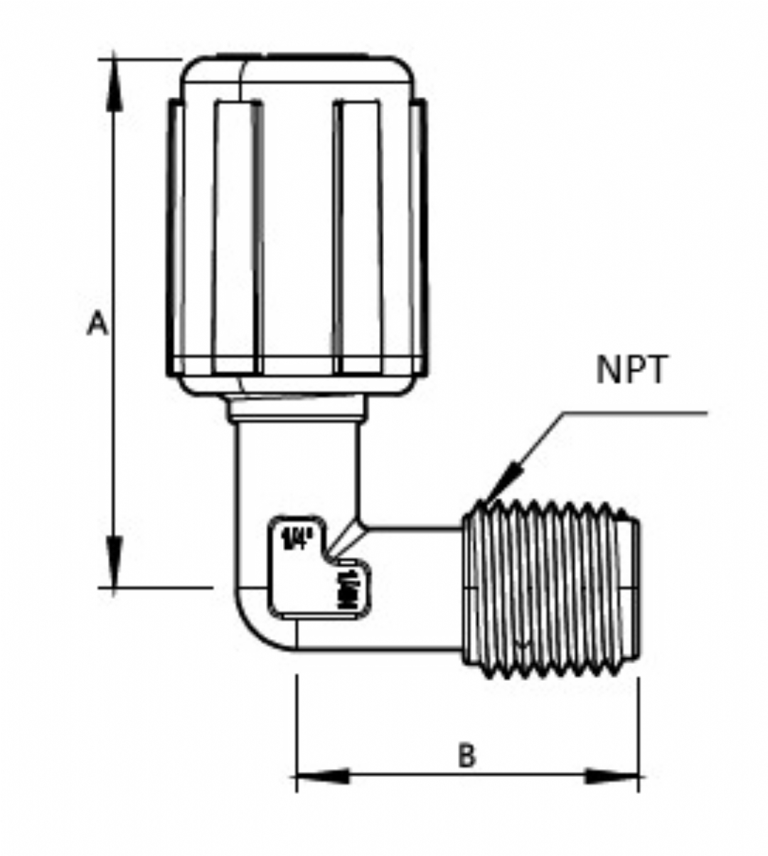 | Tube O.D. | NPT | 孔徑 | A | B |